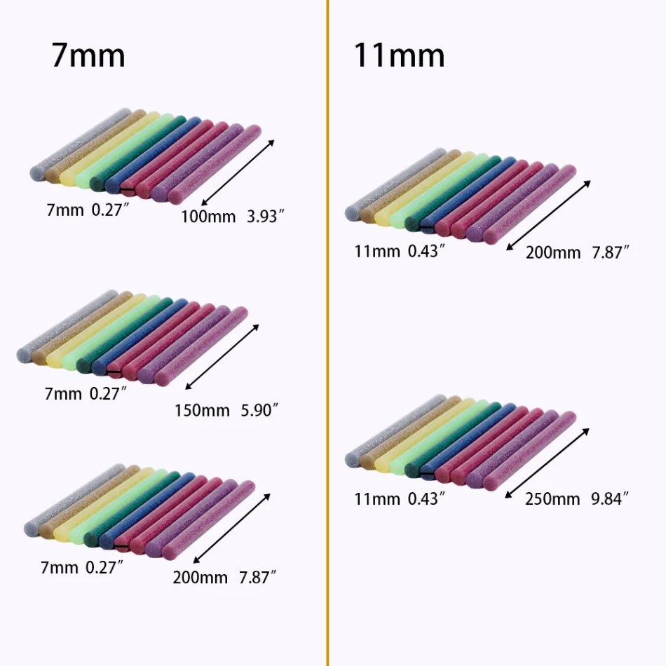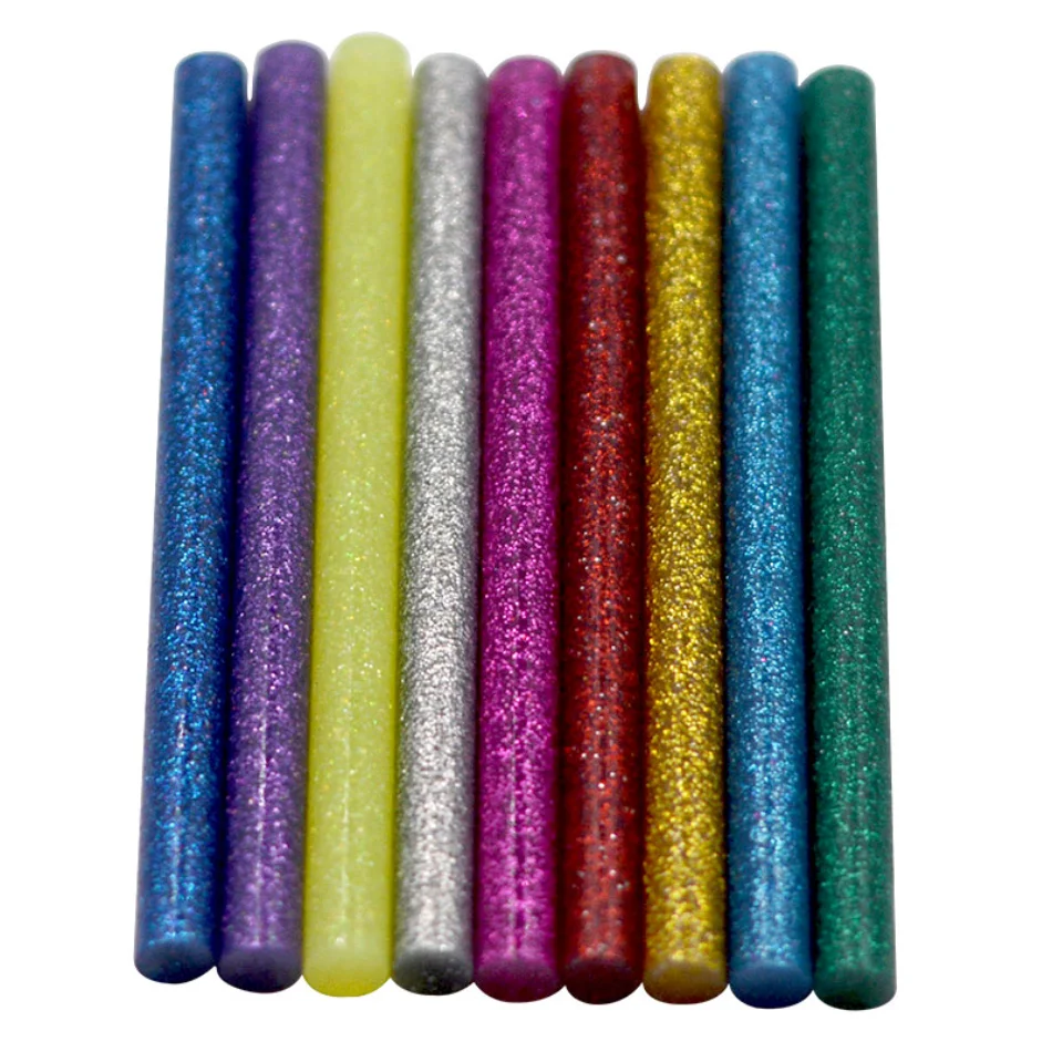10 Uds. De barras de pegamento termofusible coloridas para pistola de pegamento eléctrica, palo de cera con purpurina adhesiva de 7mm, herramienta de reparación DIY para manualidades en el hogar