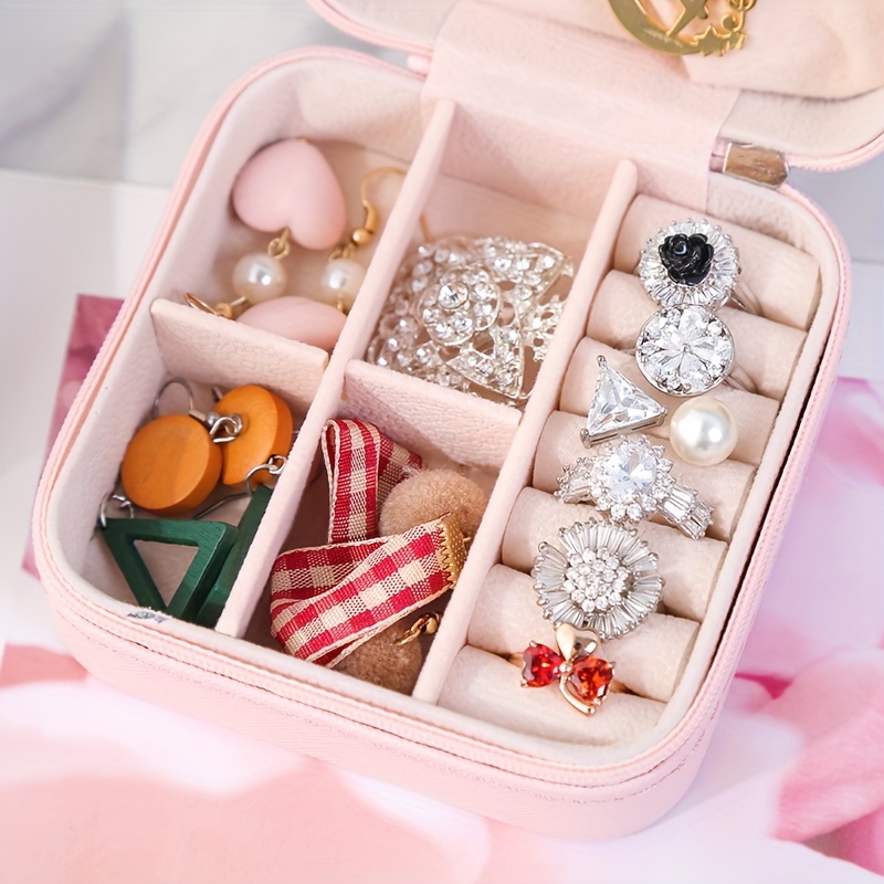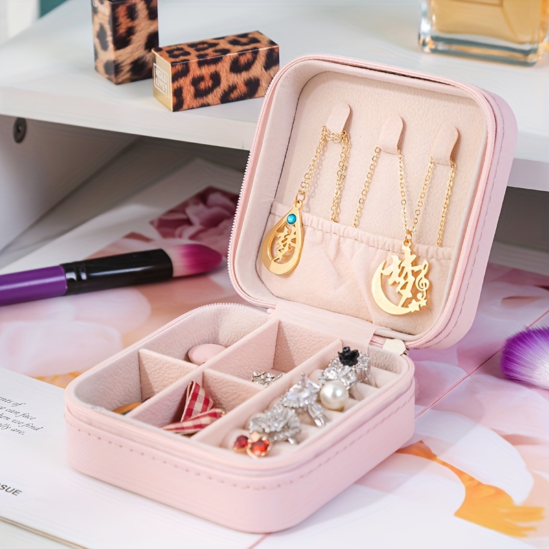 1pc Portable Jewelry Organizer, For Earring Rings Necklace Lipstick Bracelet Accessories, Travel Jewelry Box With Zipper For Birthday Gift, Desktop Organize, Vanity, Valentine's Day Gift