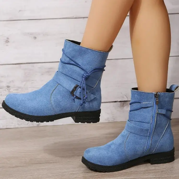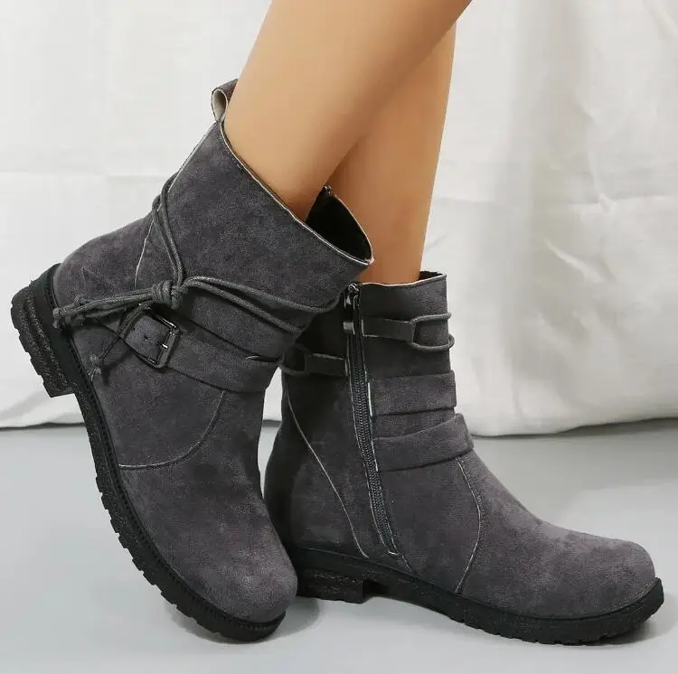 2025 Botas Chelsea para Mujer, Zapatos Retro hasta el tobillo, gamuza, Otoño Invierno, nuevas botas góticas informales para motocicleta, Zapatos de gladiador para caminar para Mujer