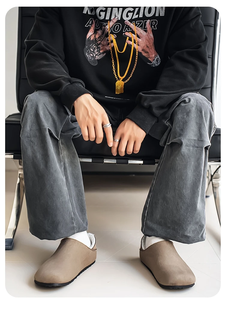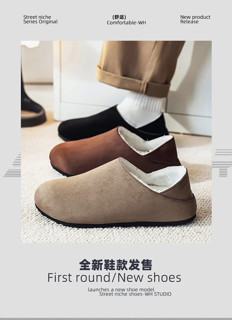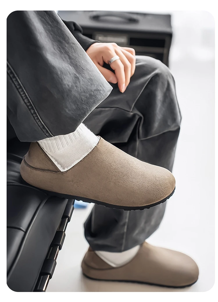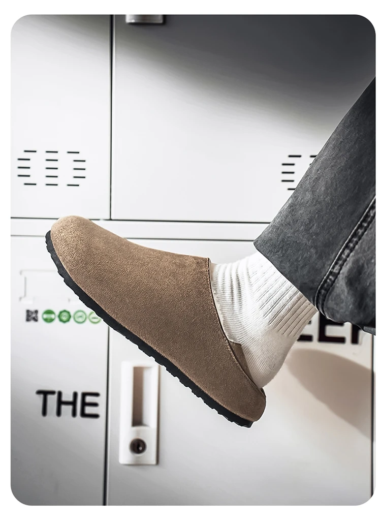 2025 zuecos de moda, zapatillas para hombre, zapatillas planas informales para exteriores, cómodas zapatillas de gamuza de suela gruesa, zapatos de playa antideslizantes para mujer