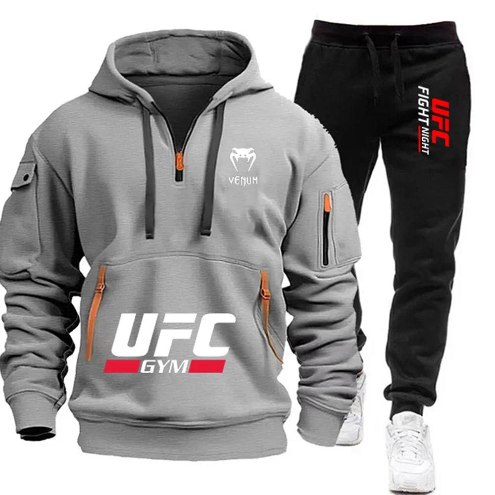 2026 nova sudadera con capucha de lucha UFC + Pantalones conjunto de dos piezas Otoño/Invierno moda Casual al aire libre resistir