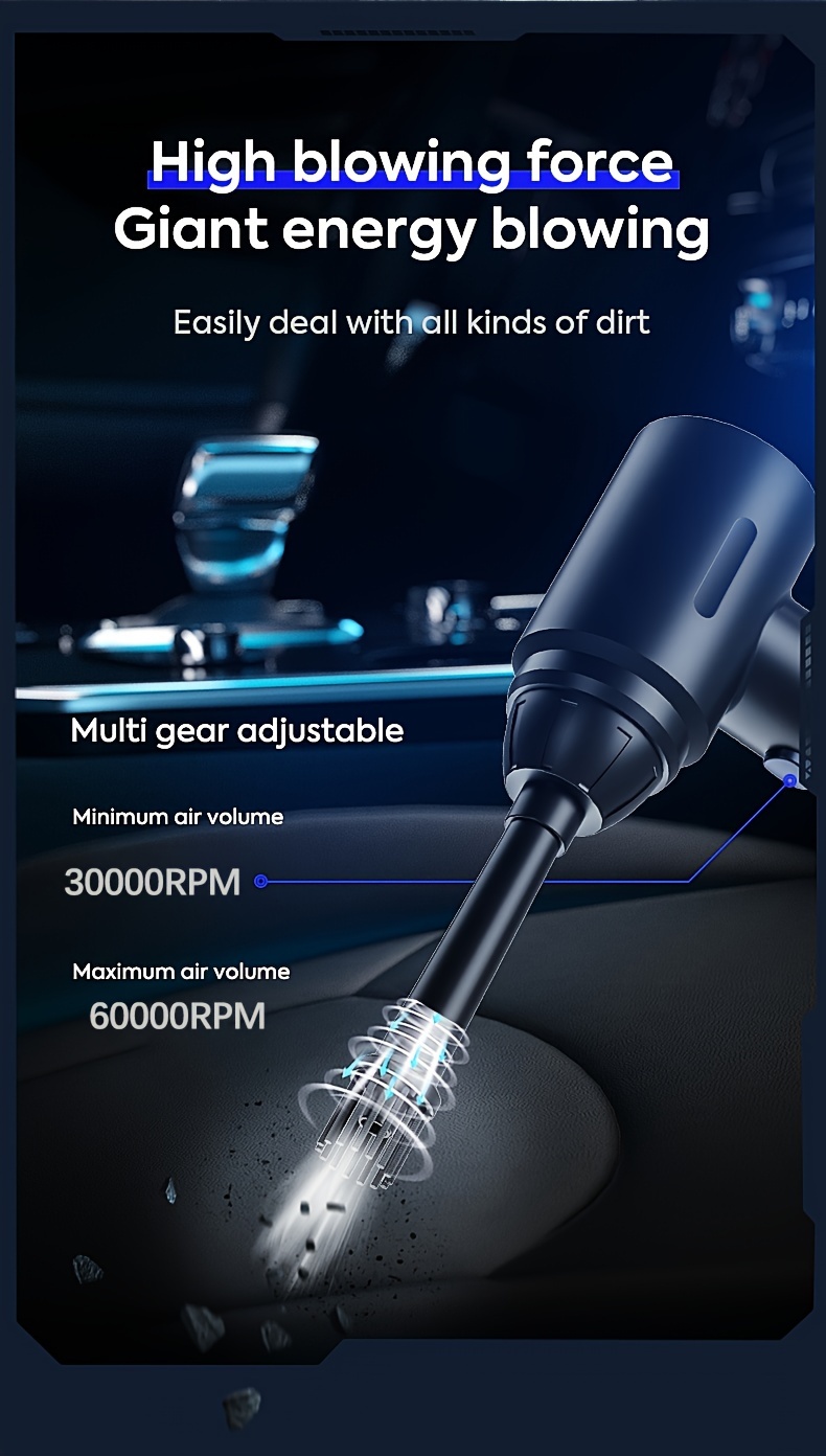 3 In 1 Compressed Air Duster, 60000RPM Cordless Dust Blower, 6000mAh Rechargeable Battery, 15000PA, Suitable For Room/Car/Keyboard Cleaning