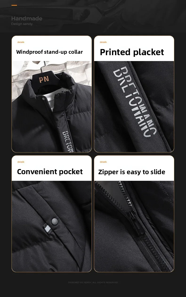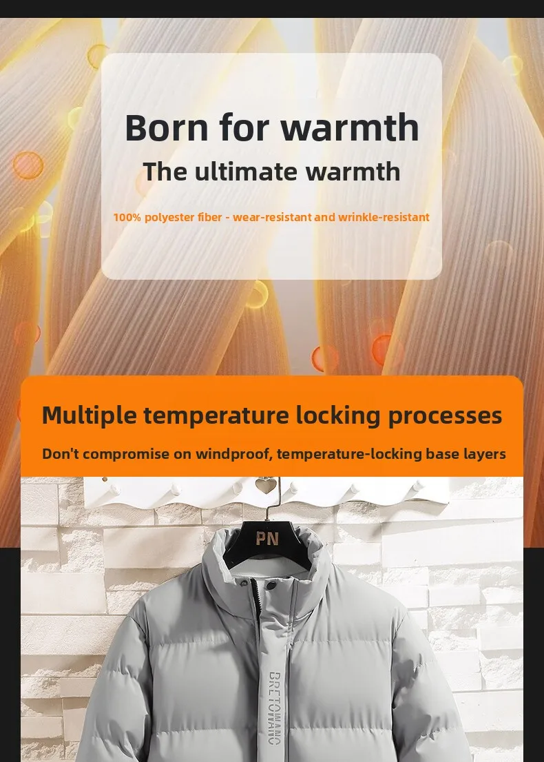 Abrigo de hombre - Nueva chaqueta de invierno y algodón - Abrigo de algodón cálido con acolchado grueso - Cuello alto - Ropa de invierno