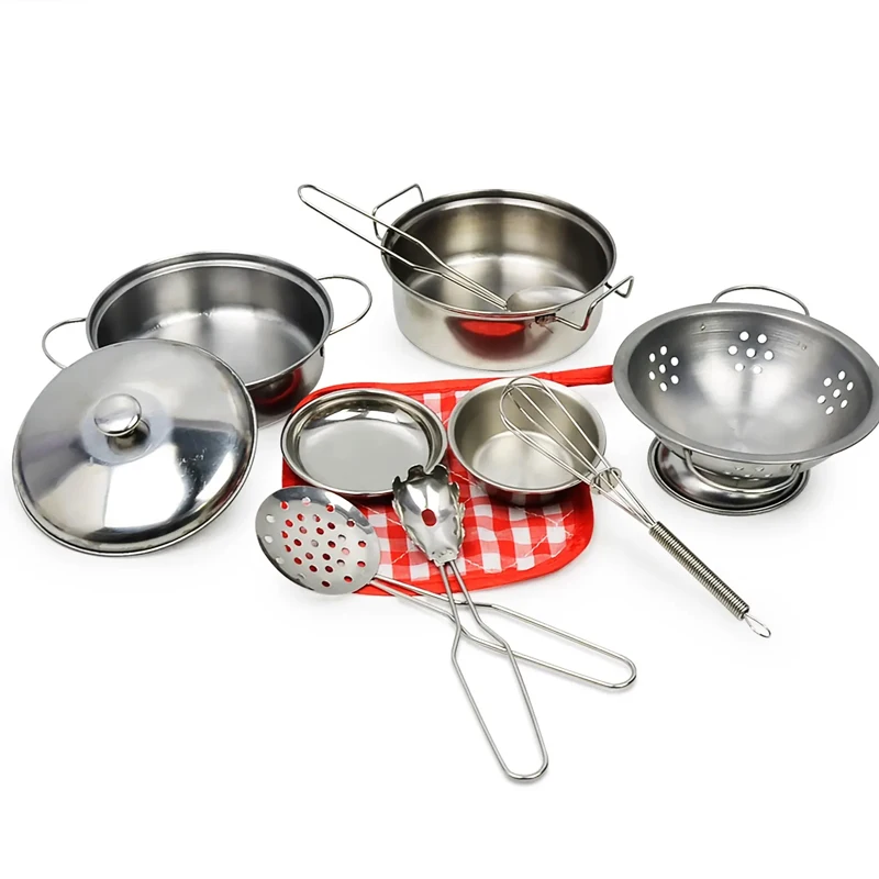 Accesorios para juego de imitación de cocina, juguetes con utensilios de cocina de acero inoxidable, juego de ollas y sartenes, utensilios de cocina, herramienta de aprendizaje para regalos