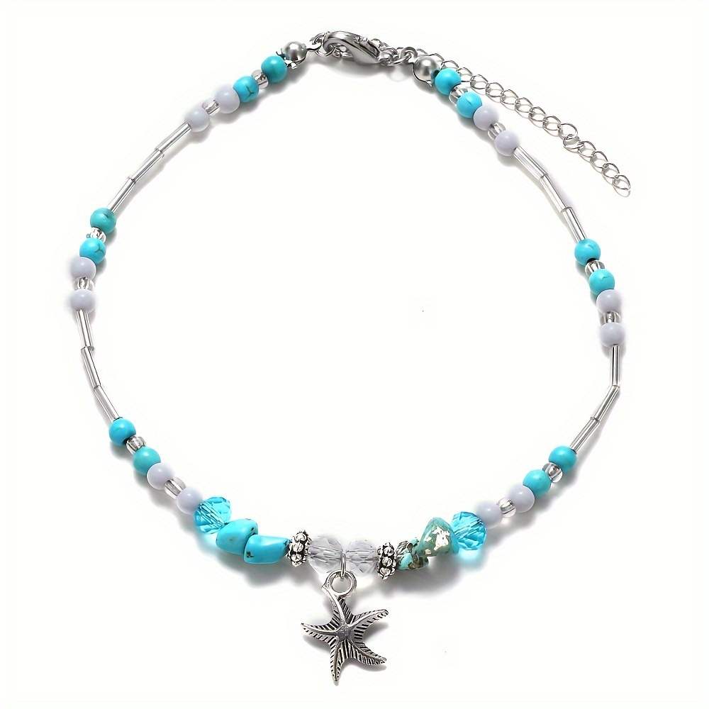 Bohemian Starfish Pendant Anklet with Irregular Beads, Elegant and Stylish Women's Summer Anklet, Ocean Elements, Vacation Beach Foot Jewelry