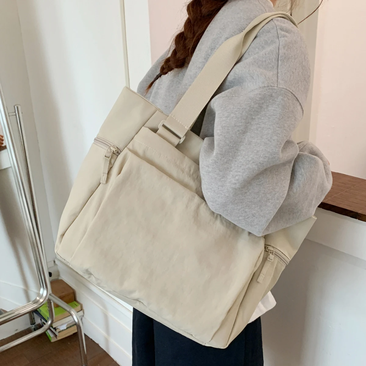 Bolso bandolera de un solo hombro con logotipo personalizado de alta gama para desplazamientos, viajes, estilo perezoso, sensación relajada, bricolaje para estudiantes universitarios