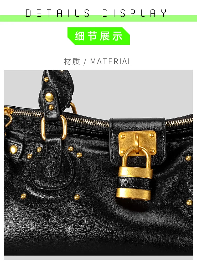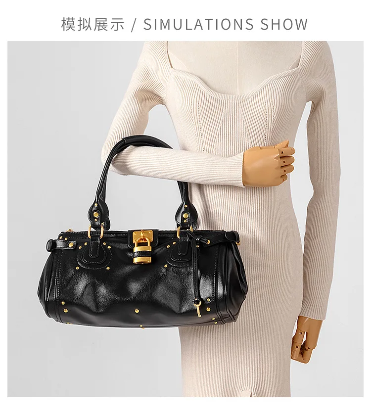 Bolso con Cabeza de Candado Retro, Bolso con Almohada con Remaches, Bolso de Chica Estilo Millennium, Bolso Cruzado para Ir al Trabajo