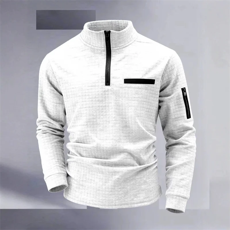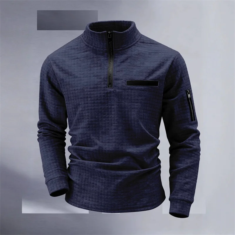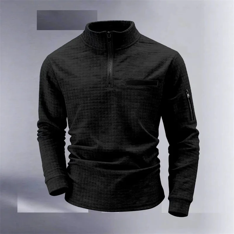 Camisa de golf para hombre para primavera y otoño: polo deportivo elegante de manga larga con cuello alto, cuadros, bolsillos de manga, cremallera