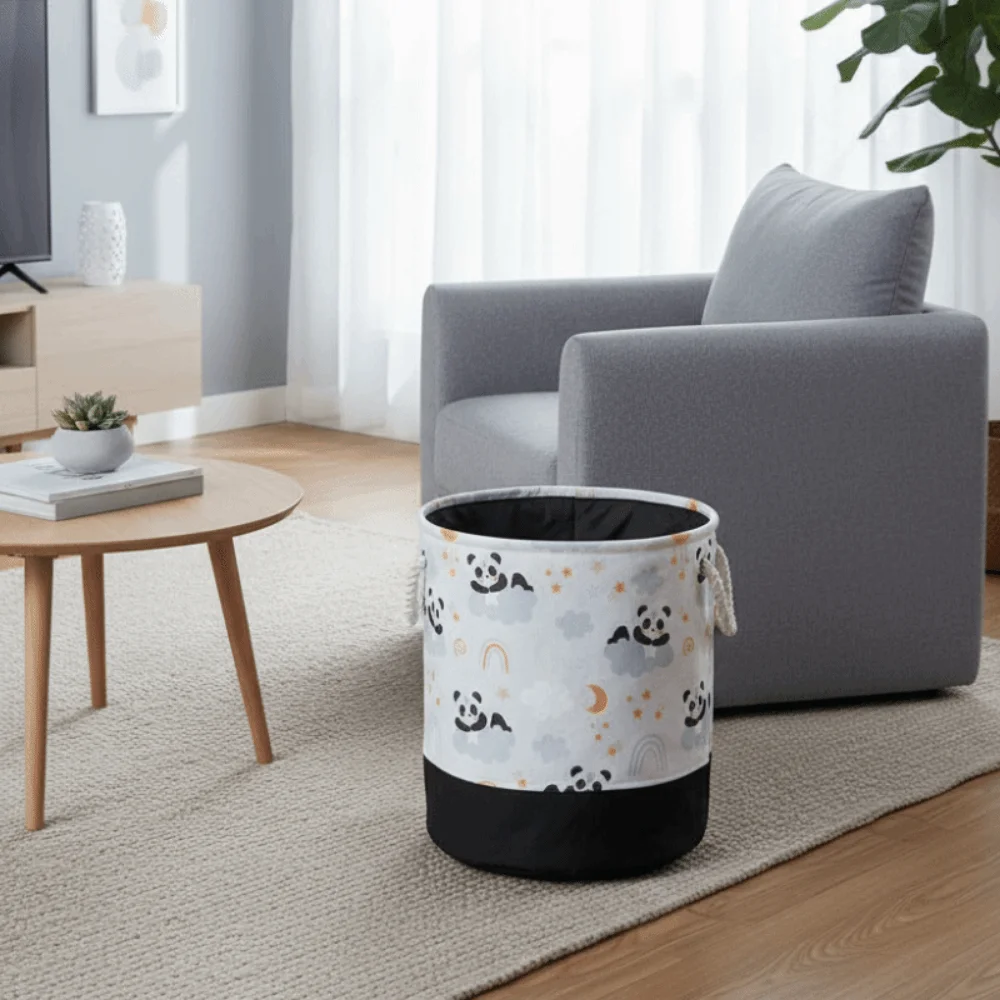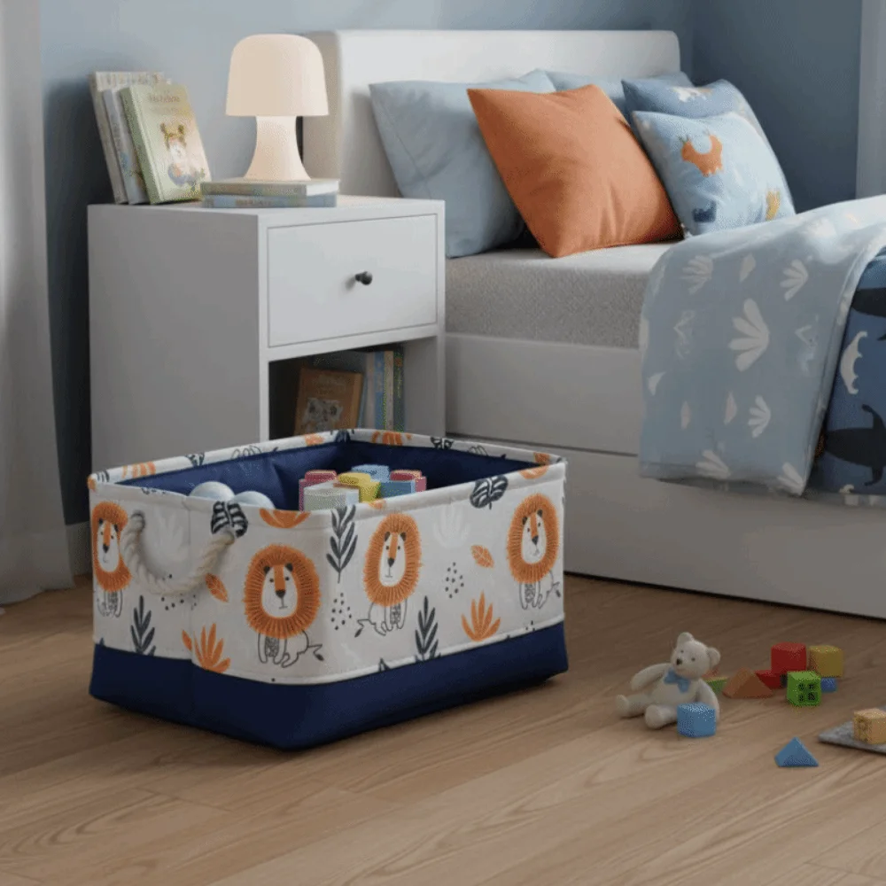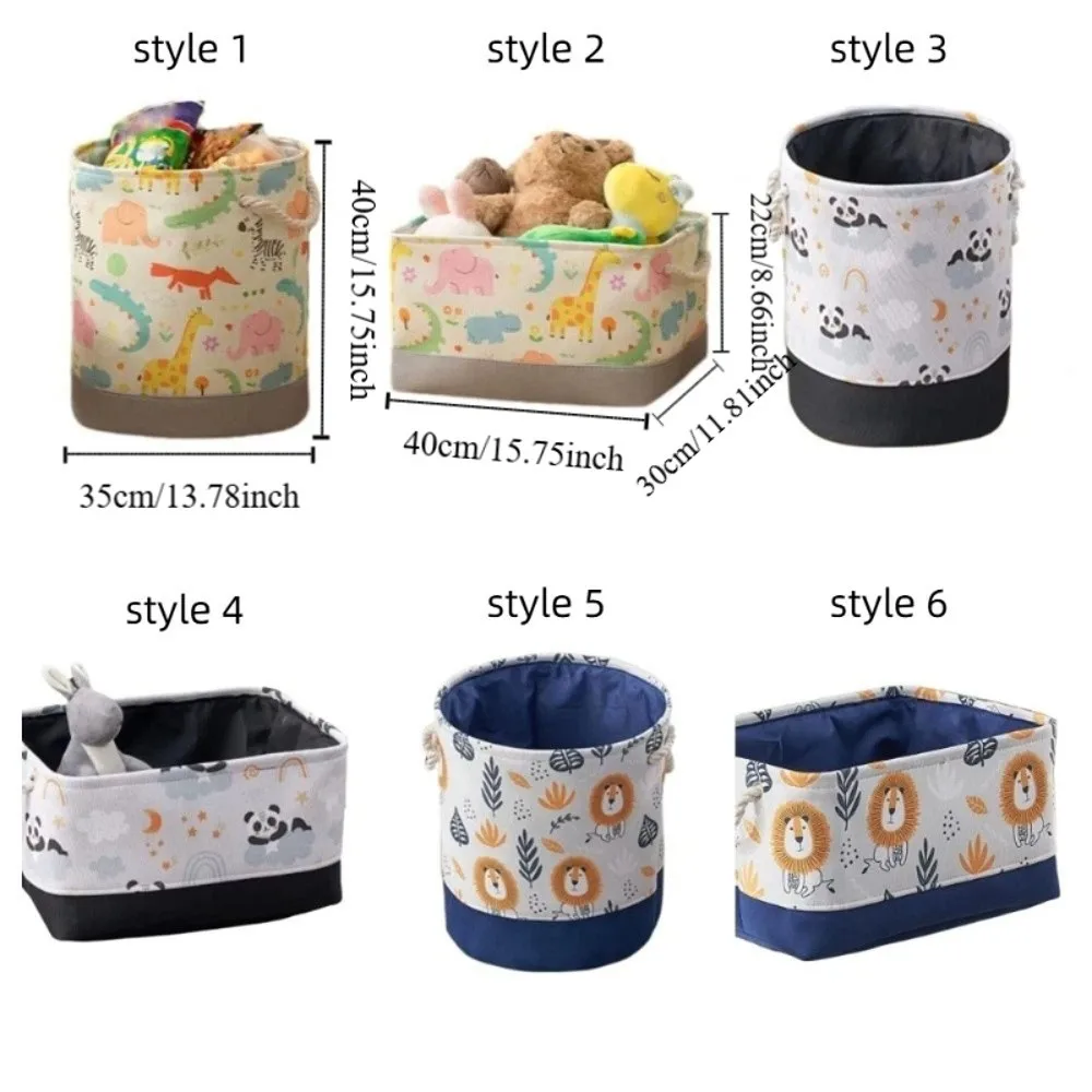 Cesta de almacenamiento de juguetes de dibujos animados, cesta de lavandería de lona portátil plegable con asa, organizador grueso, organización de ropa