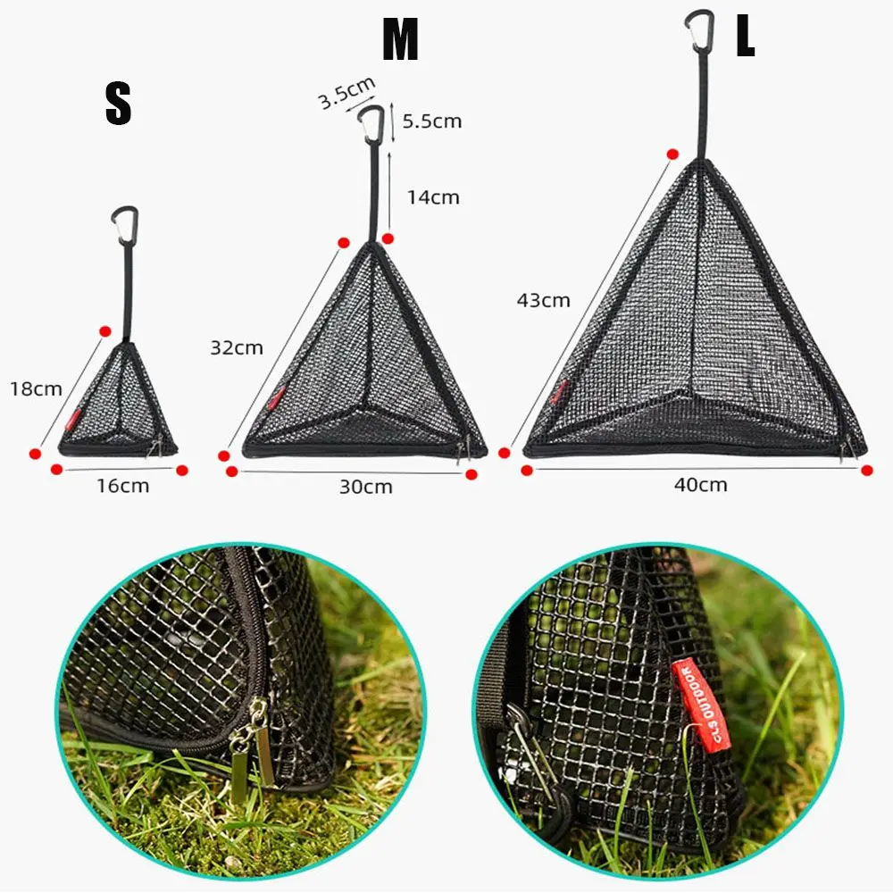Cesta de cocina para acampar al aire libre, utensilios de cocina plegables triangulares para Picnic, red de secado, bolsa colgante de malla de almacenamiento, organizador de alimentos secos para Picnic