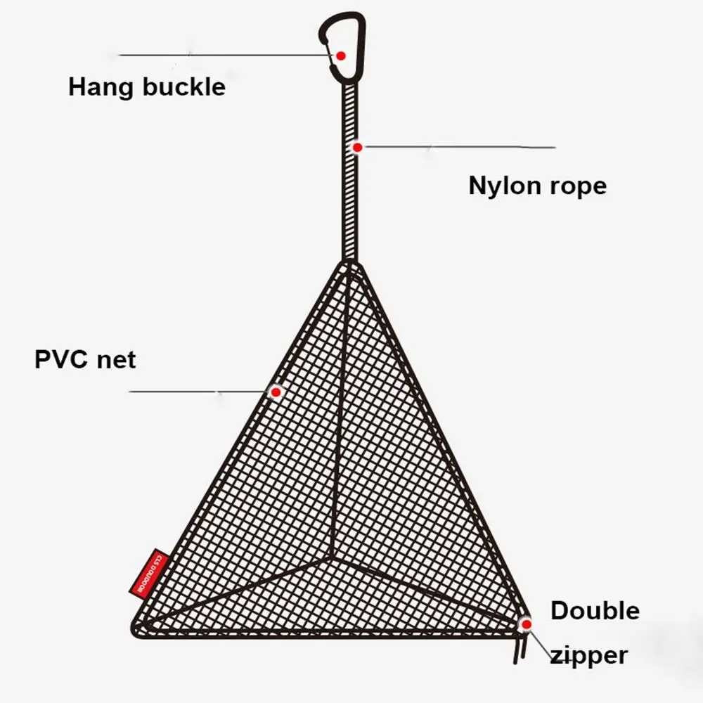 -Hook rope on top, grid design, water filtration, can clearly see the contents inside.