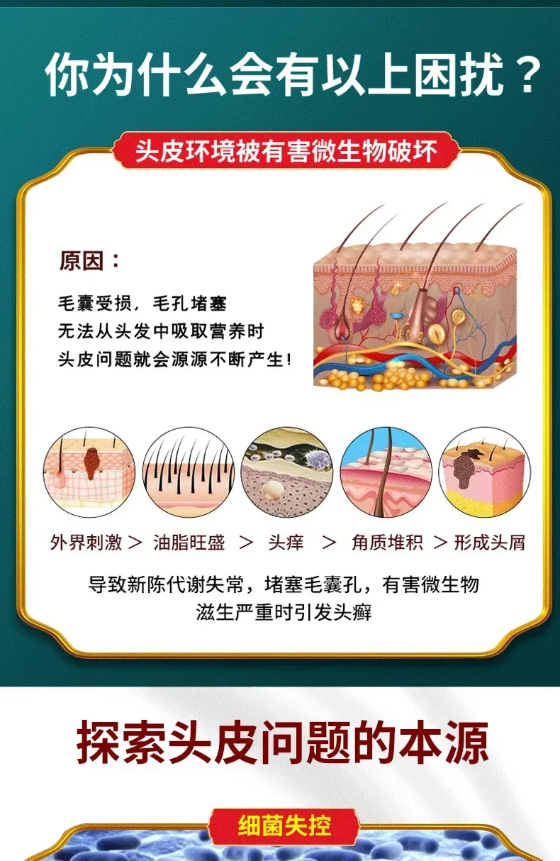 Champú anticaspa y antipicazón, cuidado del cabello a base de hierbas chinas, foliculitis de ácaros, champú seco para el cuero cabelludo seborreico, шампунь для
