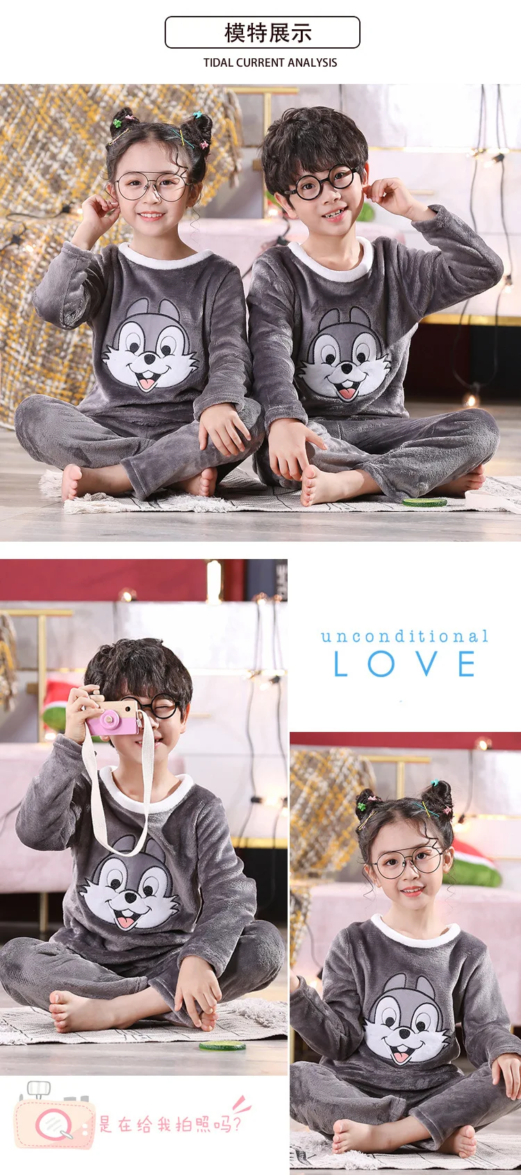 Conjuntos de pijamas de franela para niños, ropa de dormir para niños, traje de Ropa para Niñas, traje de felpa para niños pequeños, ropa de casa informal para niños, Otoño e Invierno