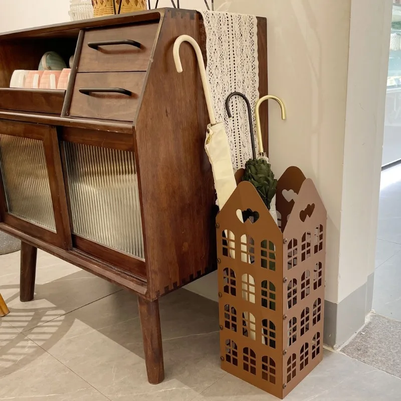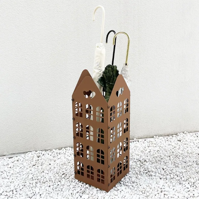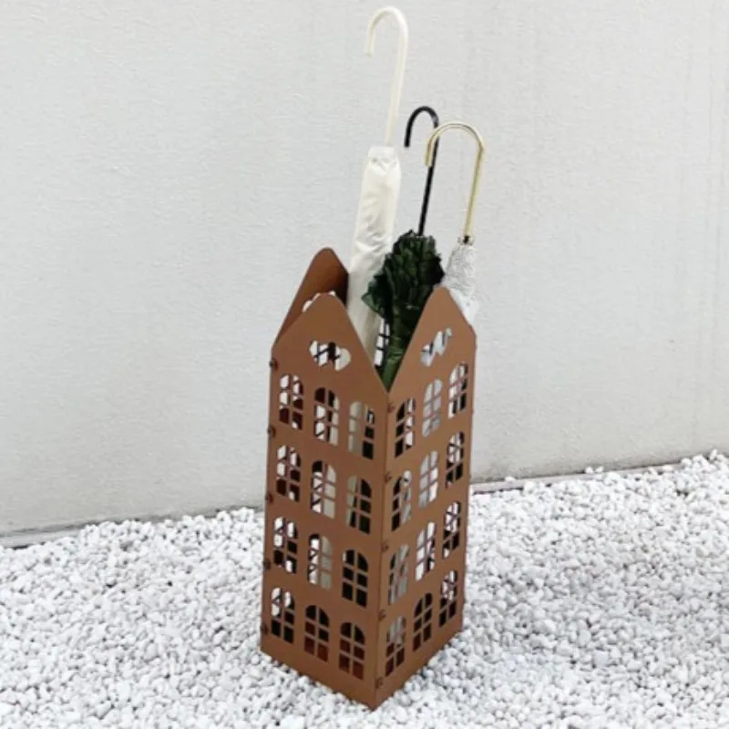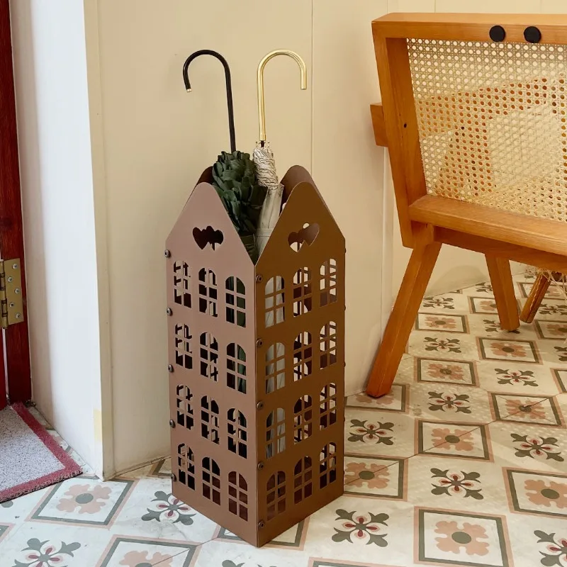 Cubo de Metal para paraguas, soporte moderno para paraguas, cesta para paraguas hueca de entrada elegante, cajas de almacenamiento para paraguas de negocios para interiores