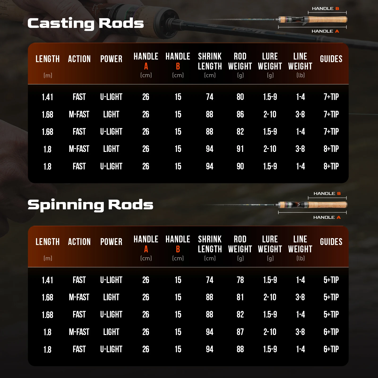 HANDING 78g Magic L Micro Caña de pescar BFS, caña de pescar de carbono, peso del señuelo 1-8g FUJI ® Anillos guía O+A UL/L Alimentación para trucha