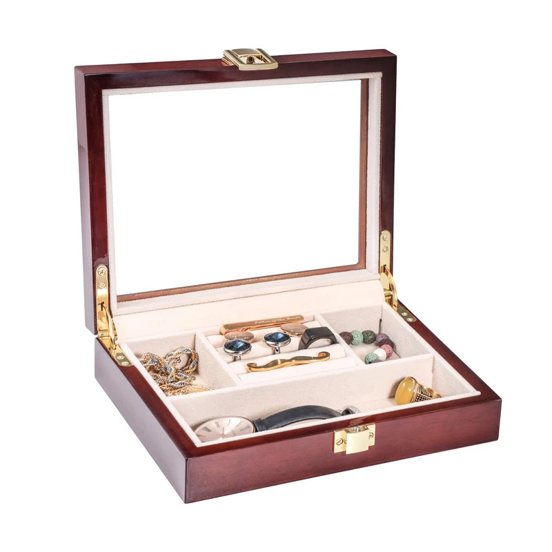 Joyero de madera de lujo, caja de exhibición multifunción de madera Vintage, elegante estuche de almacenamiento marrón oscuro, gemelos de lujo, Dis de joyería, nuevo