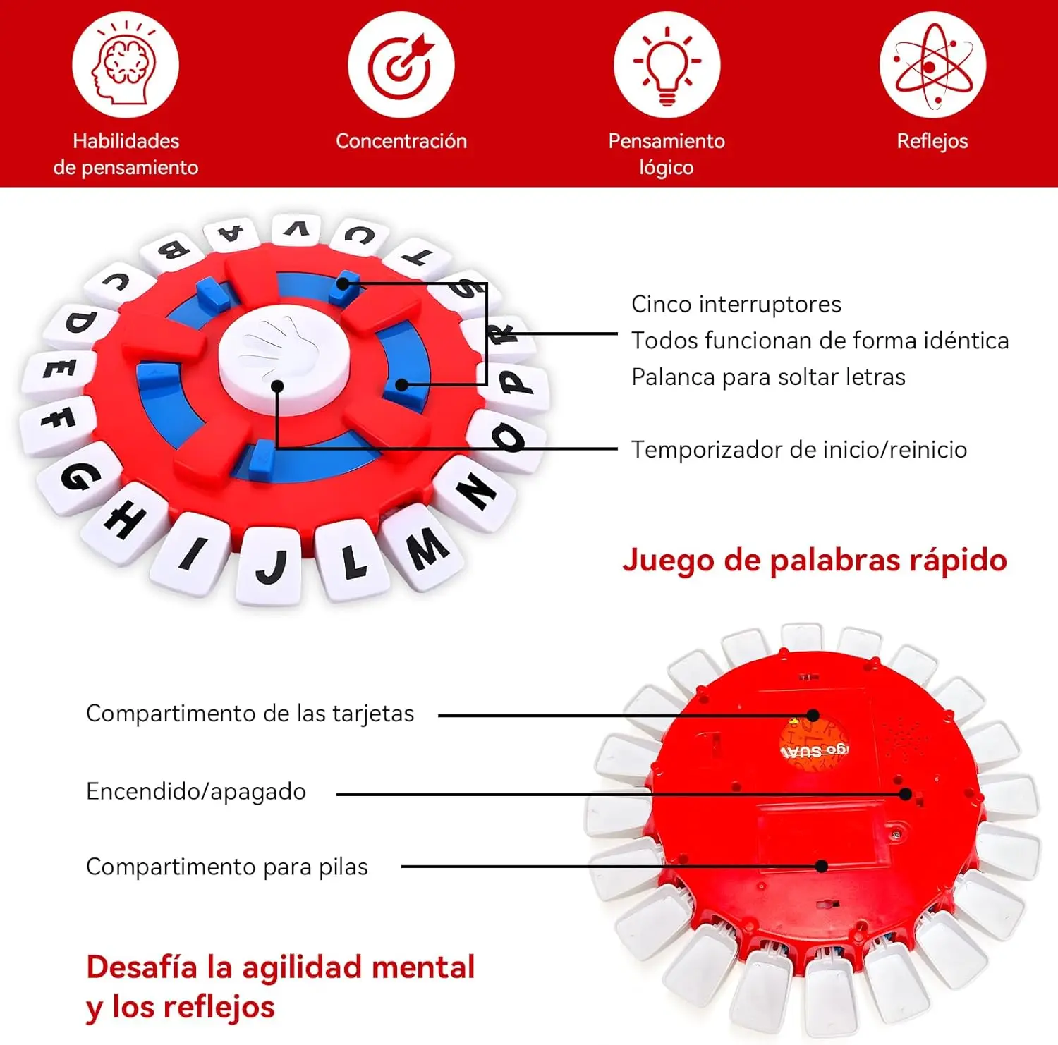 Aprender jugando: Disfrute de este rápido juego de palabras de mesa, perfecto para mejorar el vocabulario y el tiempo de reacción. Una herramienta de aprendizaje para ayudar a todos a mejorar sus habilidades palabras, es para ejercicios educativos, fiestas o noches de juegos familiares.
