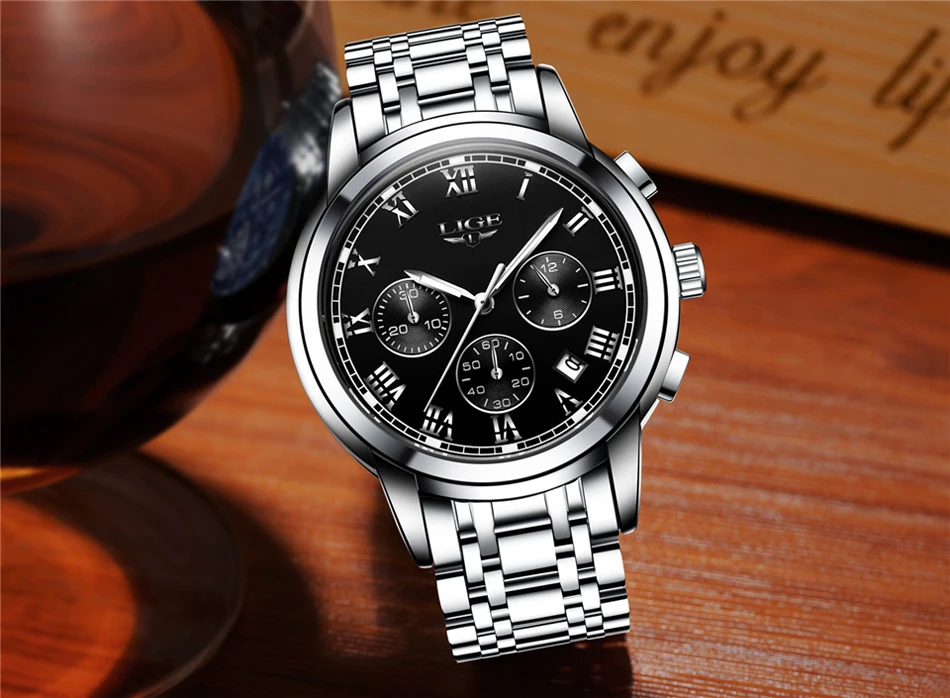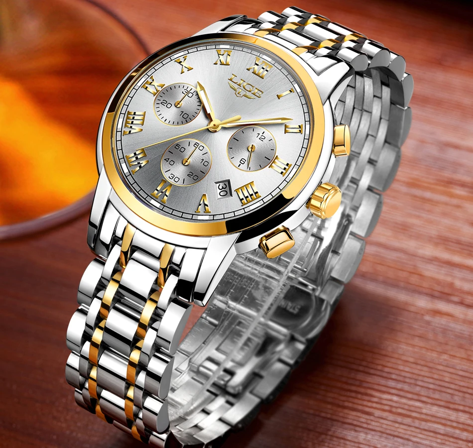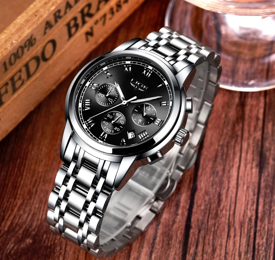 LIGE-reloj analógico de acero inoxidable para Hombre, nuevo accesorio de pulsera de cuarzo resistente al agua con cronógrafo, complemento masculino deportivo de marca de lujo con diseño moderno, 2024