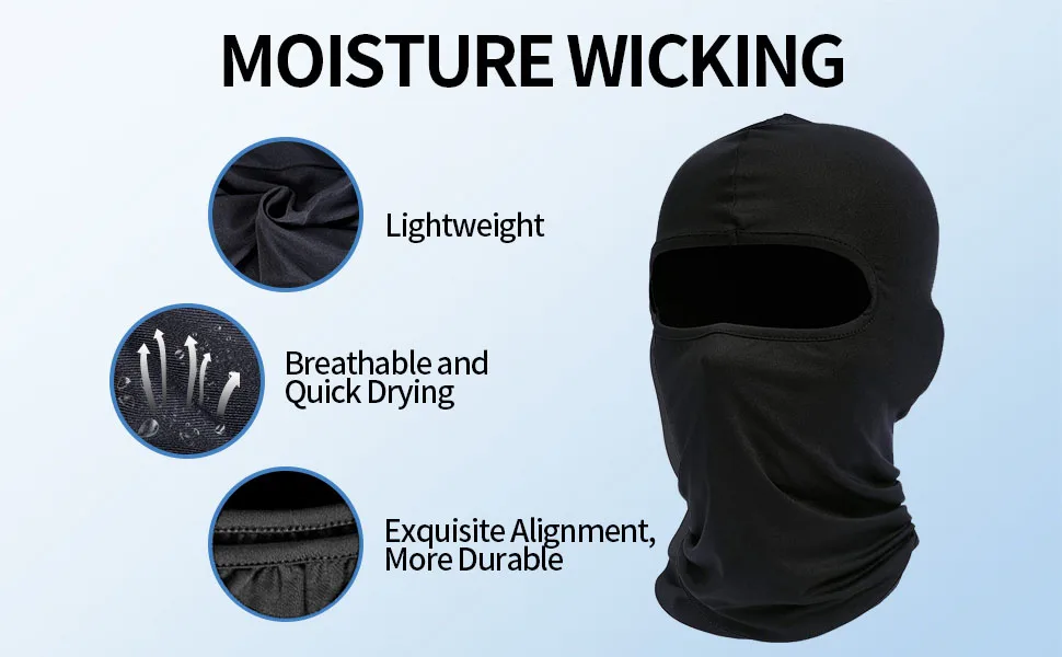 TALLA ÚNICA PARA TODOS: el material elástico significa que se adapta a todas las personas, sin importar quién sea mujer, hombre o adolescente. La mascarilla refrescante para hombres debe usarse junto a la piel debajo de cualquier casco o sombrero (incluido cualquier casco de motocicleta o casco de esquí), sin irritación de la piel y ayuda a prevenir la pérdida de calor).