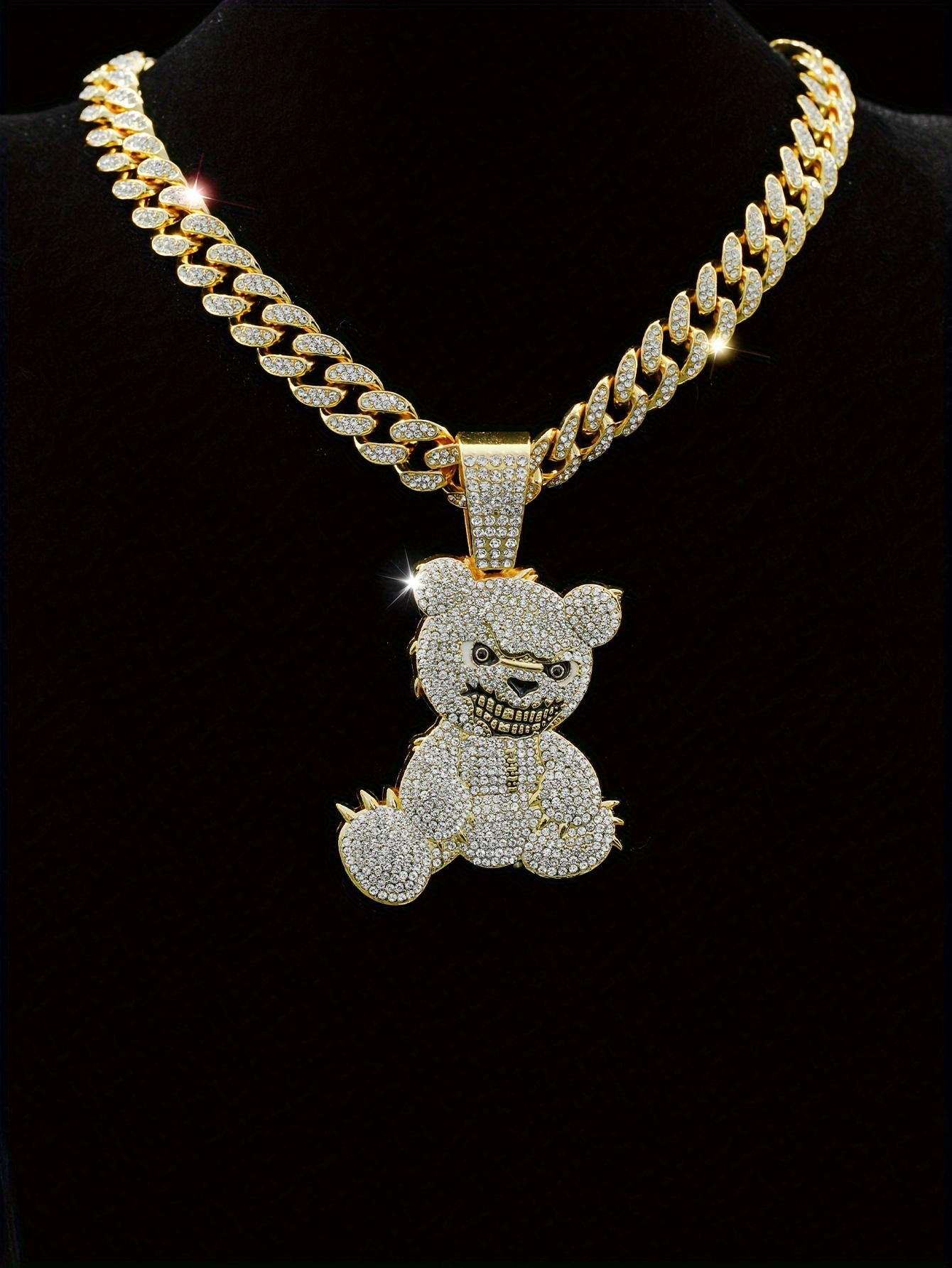 Men's Fashion Beast Bear Pendant Necklace with Rhinestone Studded Cuban Chain - Hip Hop Street Style Jewelry for Party, Festival Wear, Unisex Gift Idea (Includes 1 Pendant)