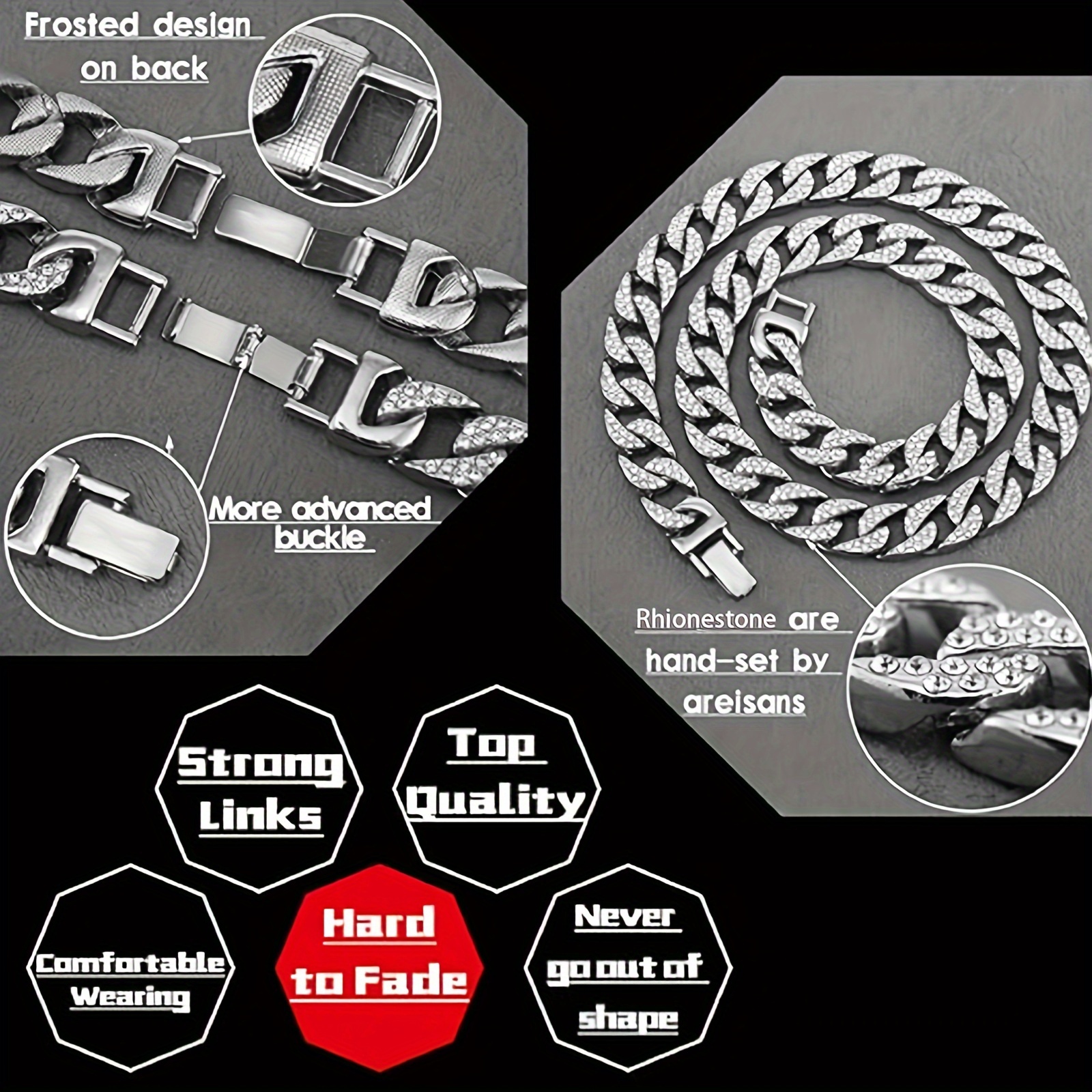 Miami Cuban Link Chain: 1. Can be worn alone as a necklace or layered with other jewelry. 2. Our main products are brightly-colored, chunky accessories such as shiny chain necklaces and exaggerated chain bracelets. 3. Design Concept: We create luxurious bling necklaces that are fashionable and durable, suitable for anyone into hip hop jewelry. 4. The cuban link chain effortlessly styles your look while also expressing your fashion attitudes. 5. This is an essential daily wear item for both men and women.
