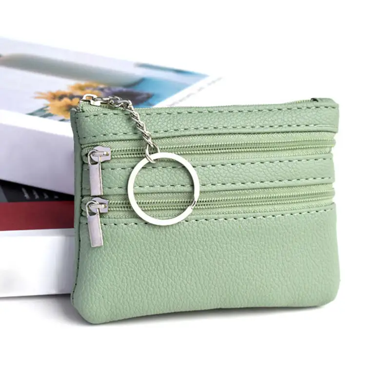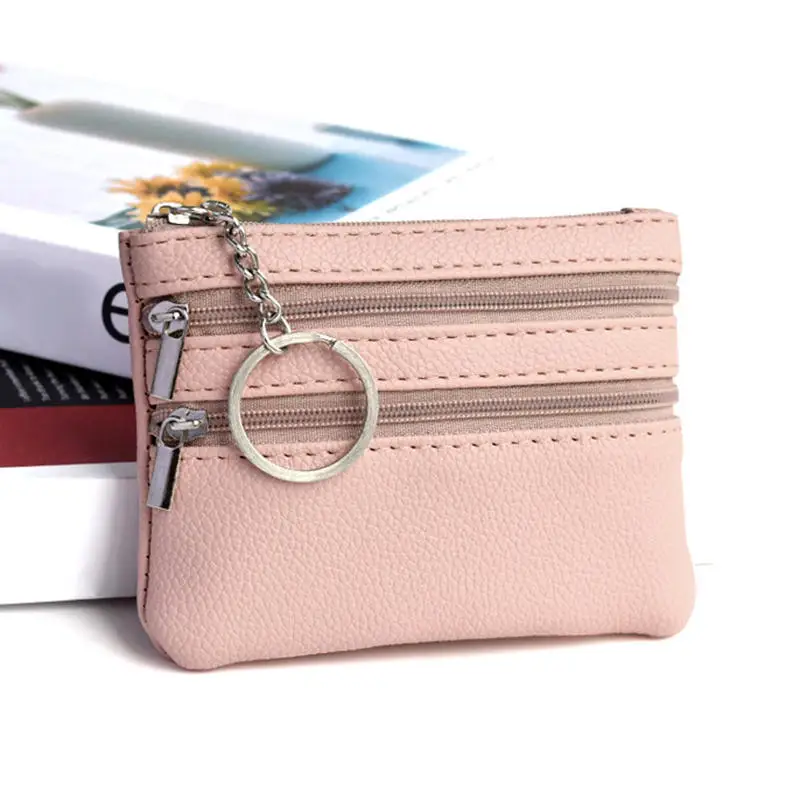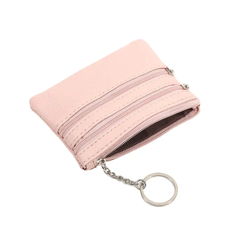 Monedero de cuero PU a la moda, cartera pequeña para mujer, monederos de cambio, Mini bolsas de dinero con cremallera, billeteras de bolsillo para niños, llavero