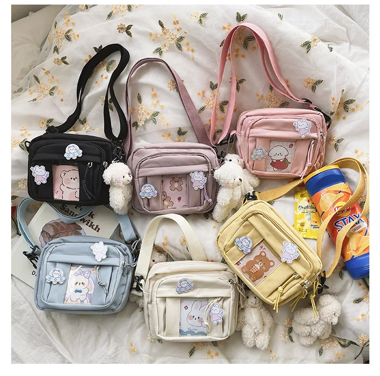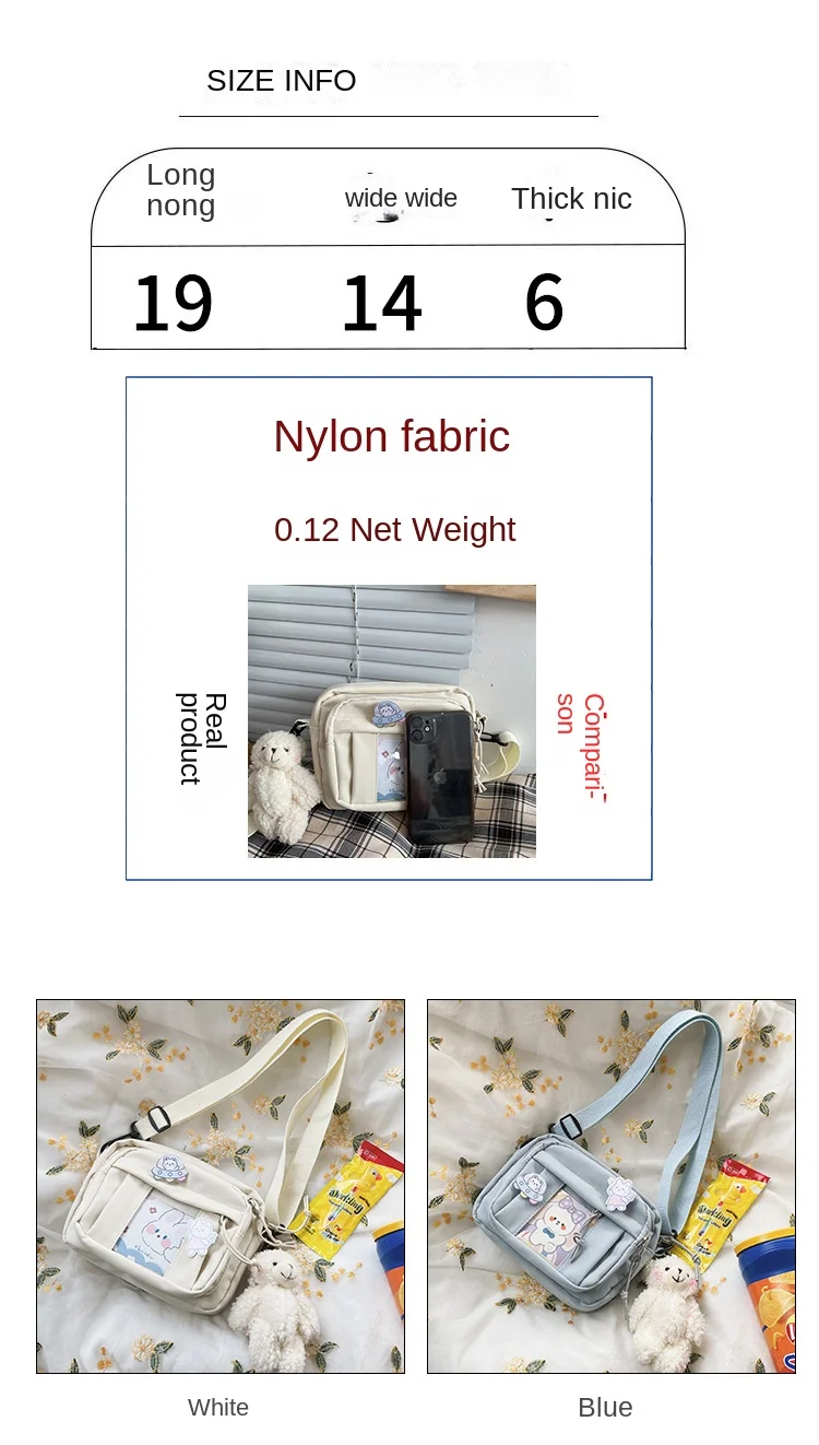 Bolso Kawaii de estilo japonés para niñas, bolso pequeño de nailon para estudiantes, bolsos cruzados transparentes, nuevo bolso de hombro para Mujer