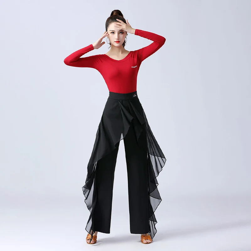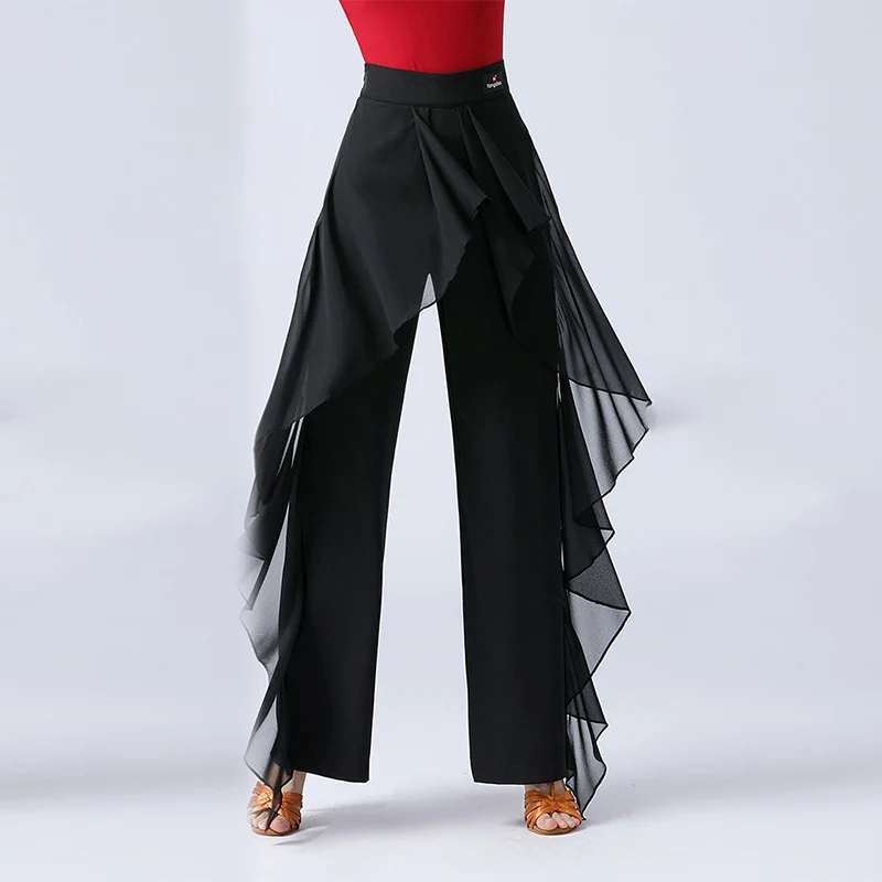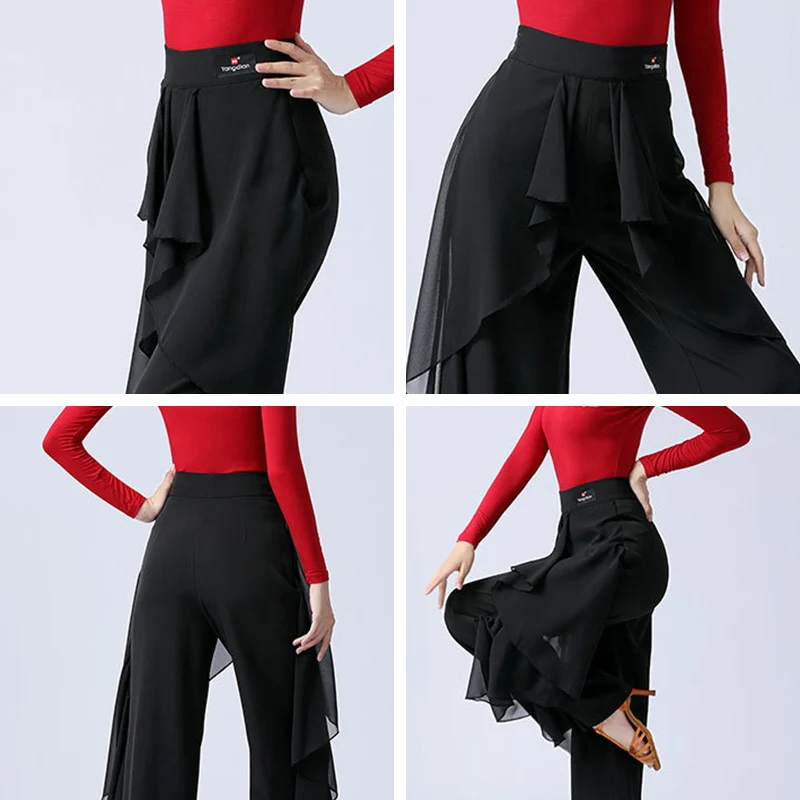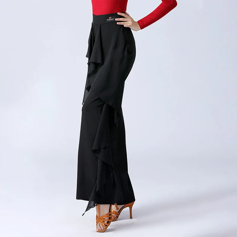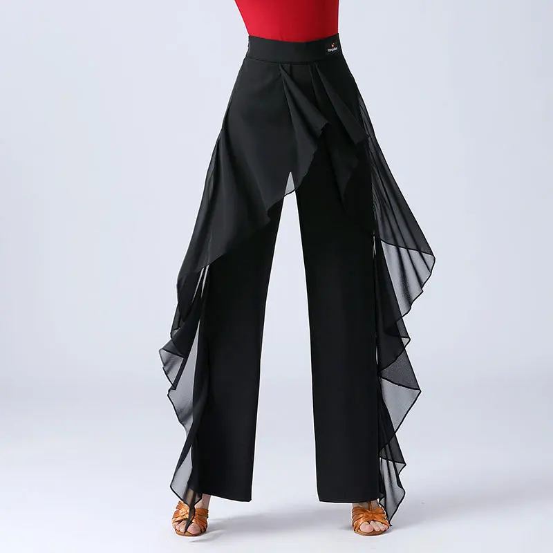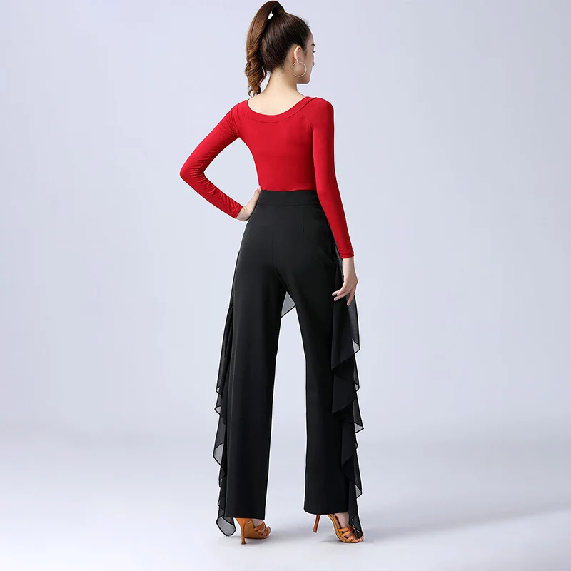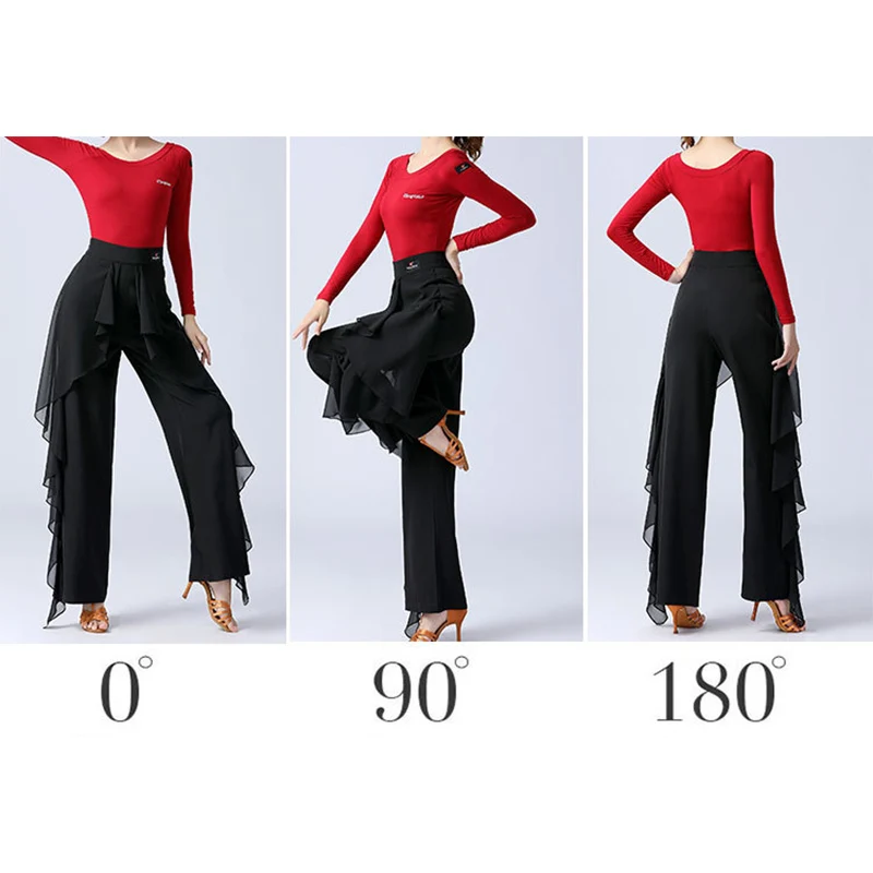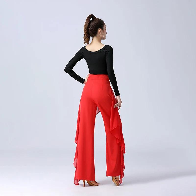 Pantalones de baile latino para mujer, pantalones anchos con volantes de cintura alta para baile moderno, pantalones de salón Tango Samba, traje de práctica de actuación