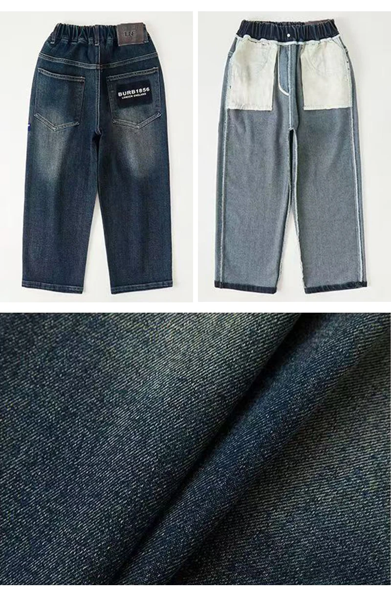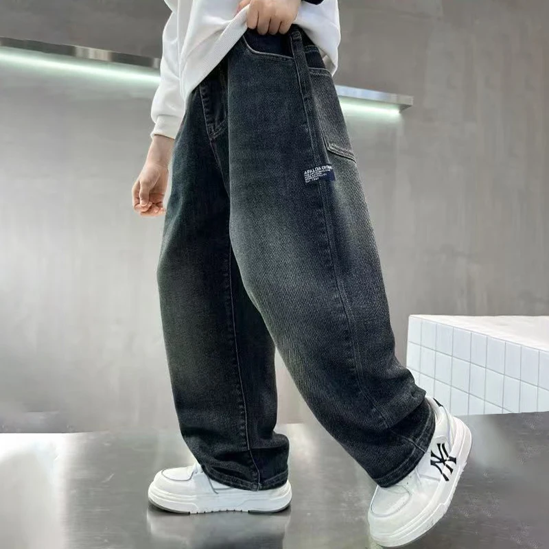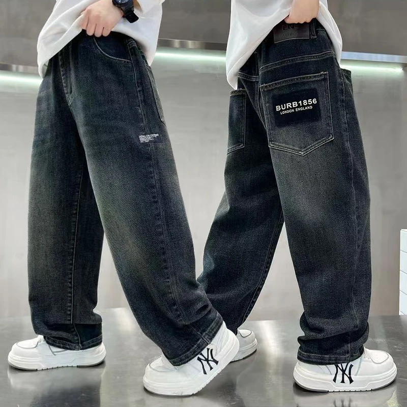 Pantalones vaqueros para niños adolescentes, pantalones vaqueros con letras a la moda para primavera y otoño, pantalones rectos sueltos informales para niños de 4 a 14 años