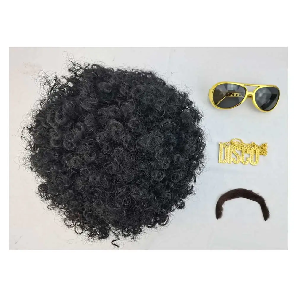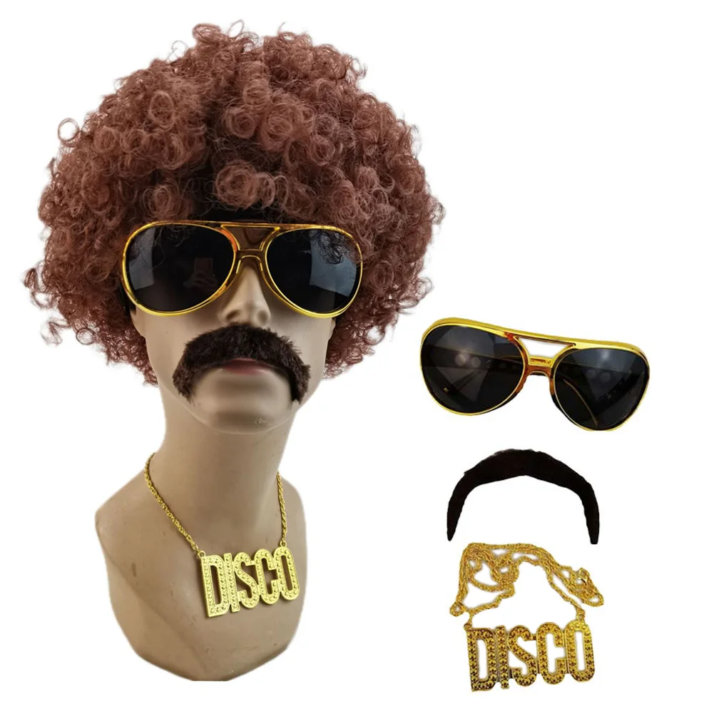 Pelucas de pelo Afro de fantasía para hombres, collar de anteojos, accesorios de disfraz, fiesta de discoteca, accesorios de fantasía, Cosplay Hippie, 70s, 80s
