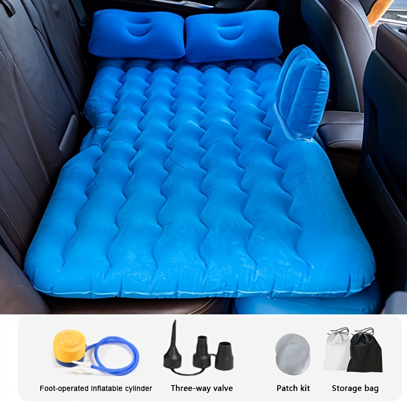 Portable Inflatable Car Bed - Soft, Comfortable PVC RV Mattress with Quilted Design, Easy to Carry, Fits Most Vehicles, Blue