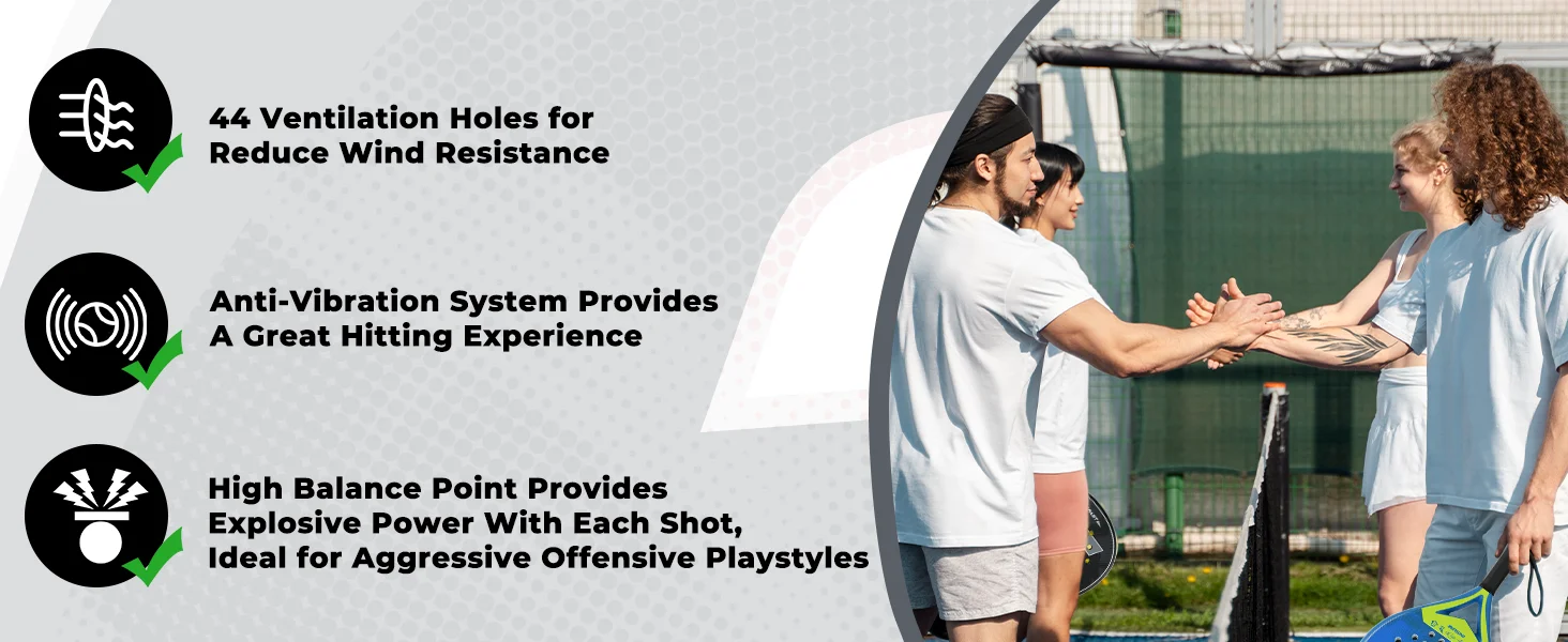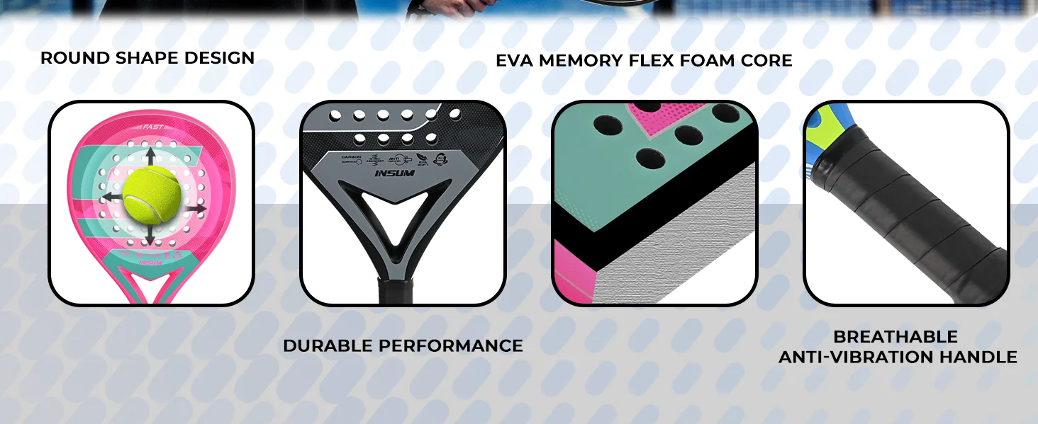 Raquetas de tenis Padel con núcleo de espuma flexible con memoria EVA y superficie de microtextura mate 3D para equipos deportivos de rendimiento mejorado