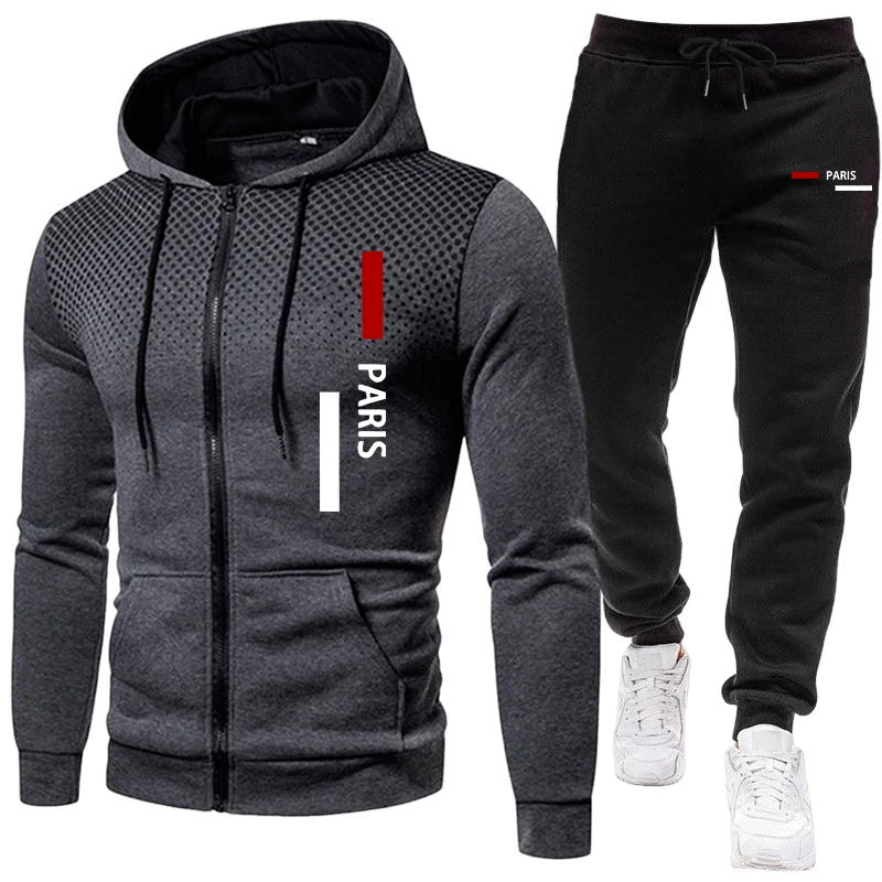 Ropa deportiva para hombre, sudadera con capucha y pantalones de chándal, sudadera deportiva informal urbana con cremallera, traje para correr, trajes de entrenamiento de otoño/invierno