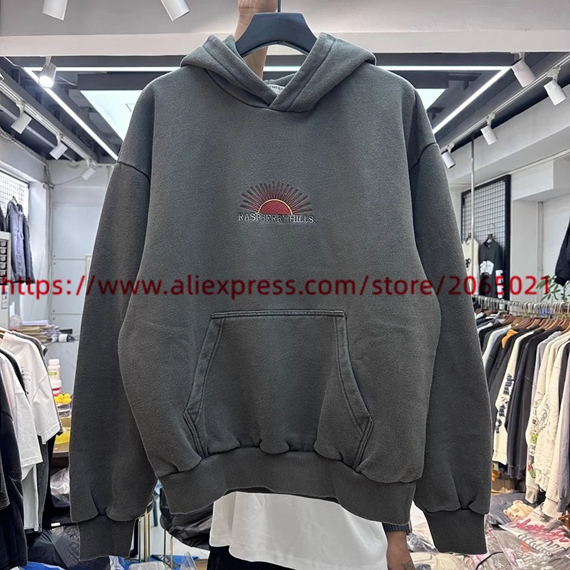 Sudadera con capucha con bordado de Sol para hombre y mujer, Jersey lavado de gran tamaño, de alta calidad