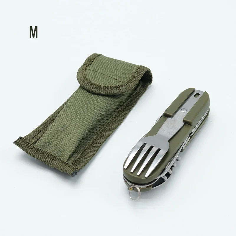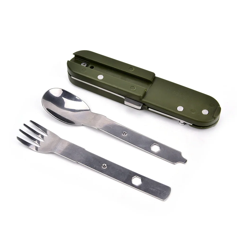 Tenedor y cuchara, suministros para acampar, juego de cena portátil, vajilla de acero inoxidable para exteriores, equipo de cuchillo plegable, utensilios de cocina para senderismo