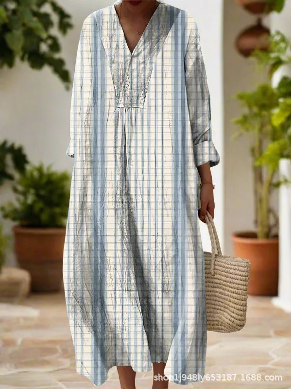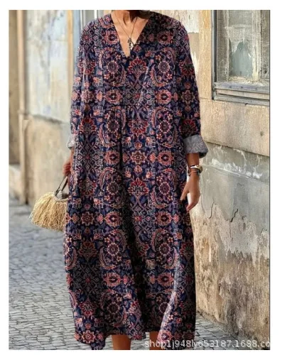 Vestido camisero con estampado Floral para mujer, vestido holgado a la moda con cuello en V, corte en A, elegante, para vacaciones en la playa, estilo sol, principios de otoño