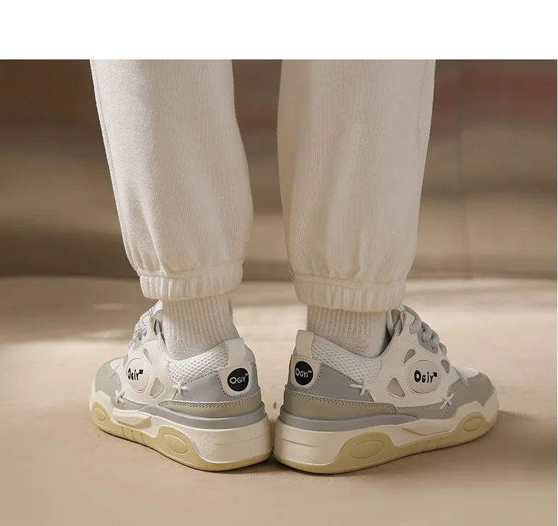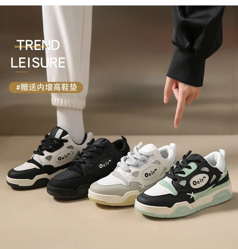 Zapatillas de deporte gruesas para hombre, zapatos de suela suave para correr, informales, de cuero de microfibra, transpirables, con plataforma aumentada de altura