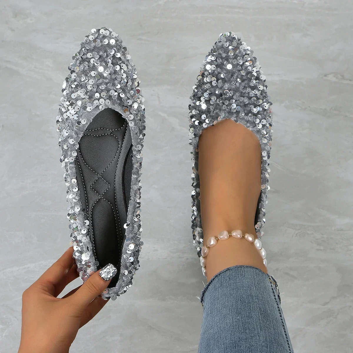Zapatos para mujer, gran oferta, zapatos planos de un patada para mujer, zapatos planos cómodos informales ligeros con punta estrecha y lentejuelas para otoño